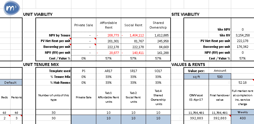M3Pamwin Lite has a goal-seek function to calculate the maximum price a developer could pay for land, including an accurate NPV valuation of affordable units on the site